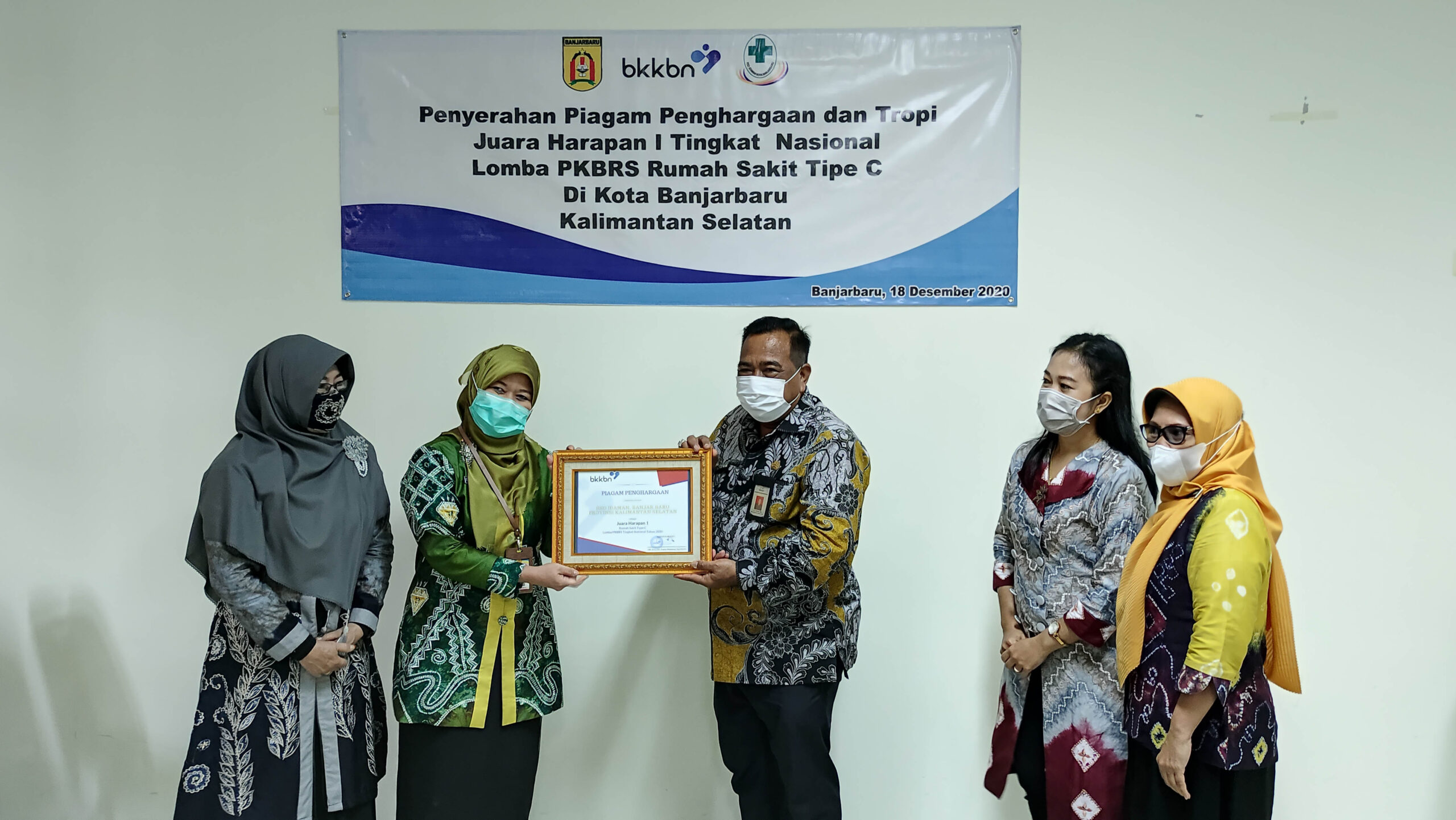 Banjarbaru, 18 Desember 2020. Direktur RSD Idaman Kota Banjarbaru Dr. dr. Endah Labati Silapurna, MHKes menerima tropi dan piagam penghargaan dari Perwakilan BKKBN Provinsi Kalimantan Selatan, atas partisipasinya dalam Lomba PKBRS Rumah Sakit Type C Tingkat Nasional. Dalam kesempatan tersebut Kepala Perwakilan BKKBN Provinsi Kalimantan Selatan (Ir. H. Ramlan, MA) memberikan selamat kepada RSD Idaman Kota Banjarbaru atas raihannya menjadi Juara Harapan I Rumah Sakit Type C pada Lomba PKBRS Tingkat Nasional Tahun 2020.