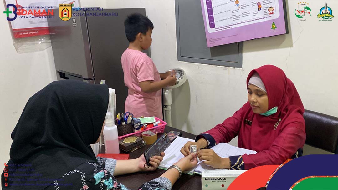 BANJARBARU – Poliklinik Gizi Rumah Sakit Daerah (RSD) Idaman Kota Banjarbaru membagikan obat cacing secara gratis kepada masyarakat yang memiliki balita berusia 1 – 5 tahun.