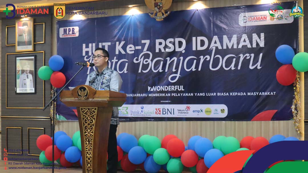 BANJARBARU – Perayaaan Syukuran HUT ke-7 “Wonderful” RSD Idaman Kota Banjarbaru dimulai dengan nuansa kebahagiaan para pengunjung. Wali Kota Banjarbaru, H.M. Aditya Mufti Ariffin bersama Forum Komunikasi Pimpinan Daerah (Forkopimda) serta Kepala SKPD dan Direktur RSD Idaman membagikan paket ribuan snack kepada para pengunjung, Sabtu (28/10/2023). Adapun total snack yang dibagikan ada sebanyak 1.150 paket, yang mana kegiatan ini di inisiasi oleh Instalasi Gizi RSD Idaman Banjarbaru.
