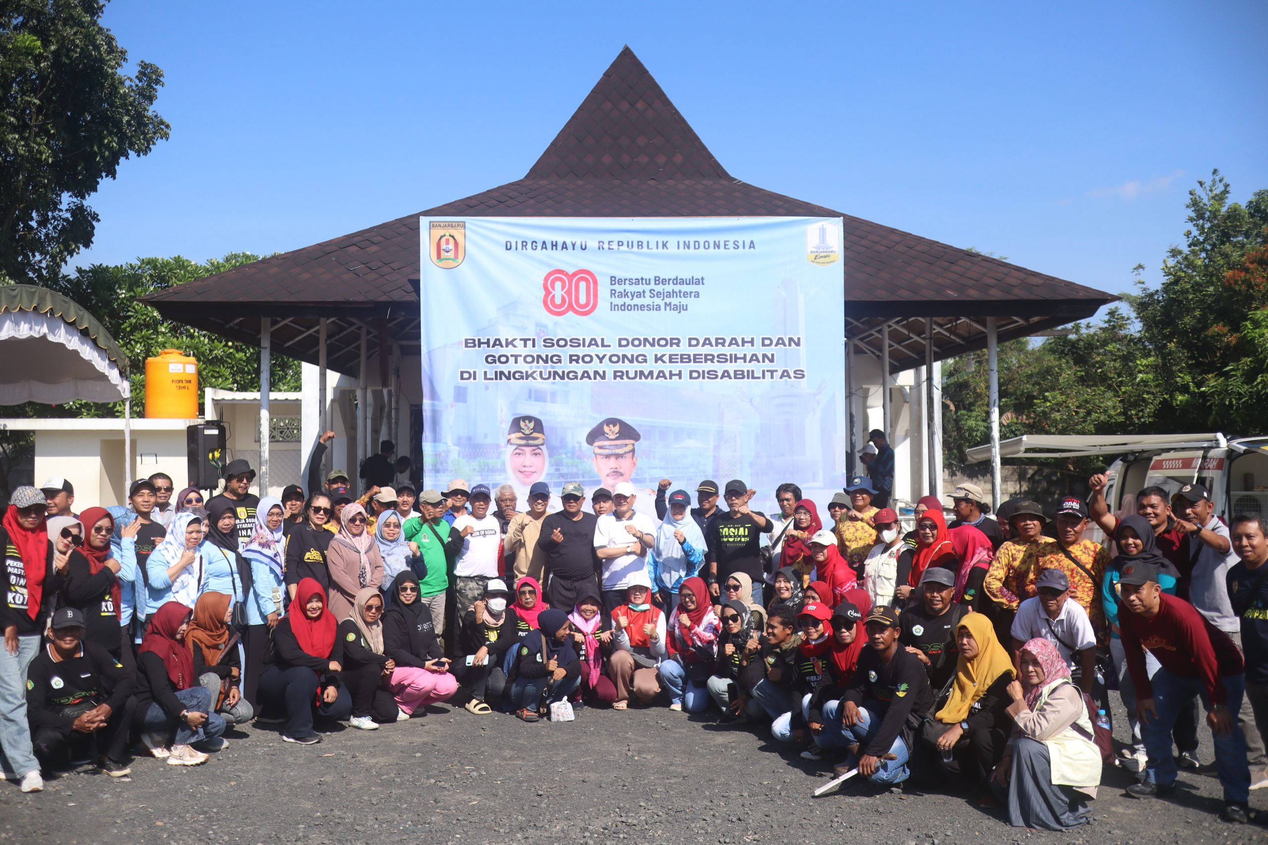 Tak hanya aksi donor darah, RSD Idaman bersama tim Pelaksanaan Kegiatan HUT RI di Kota Banjarbaru juga turut melaksanakan kegiatan gotong royong dengan membersikan lingkungan Rumah Disabilitas. (Unit Humas dan Pemasar)